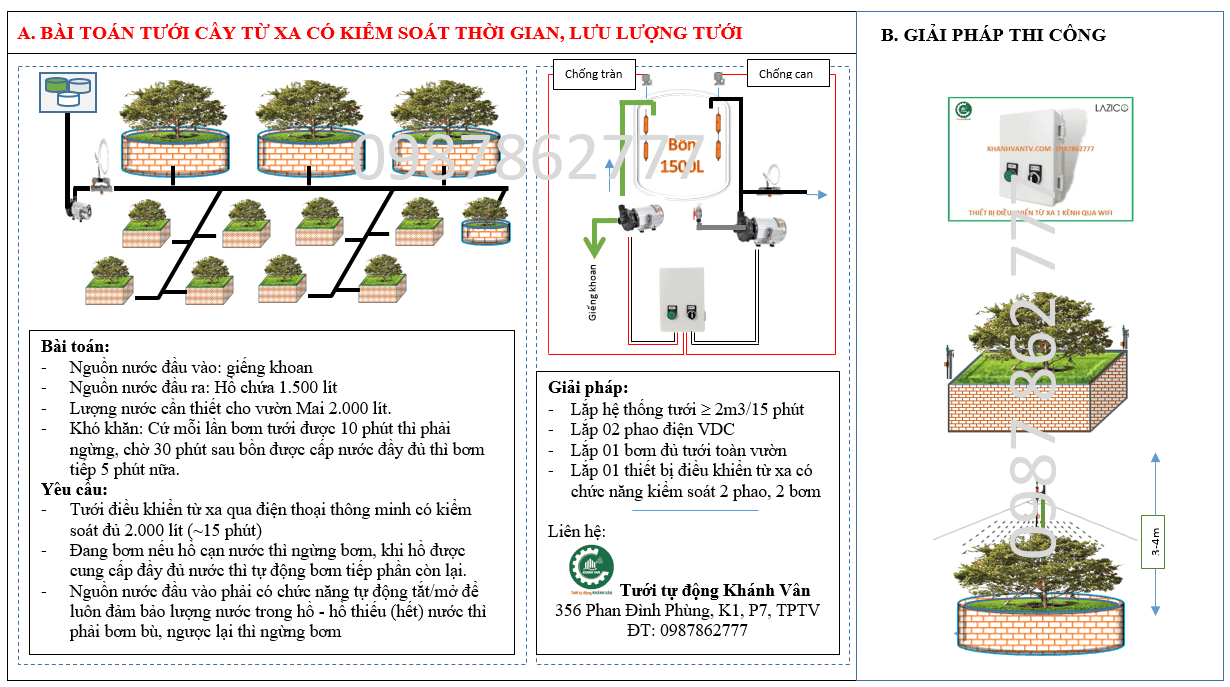 Ghi lại toàn cảnh tưới vườn Mai 4000m2 tại Cầu Ngang - Trà Vinh với thiết bị điều khiển tưới từ xa có kiểm soát nguồn nước